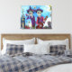 Segredos Da Canvas Mariachi. Esta pintura colorida acrílica é pintada à mão com um fundo azul e o tema é uma celebração do "Dia dos Mortos" num cenário de Cemitério mexicano com figuras detalhadas de uma Banda Mariachi tocando trompete e violão. Uma obra de arte original de Laura Barbosa criou em 2012. O "Dia De Los Muertos Art" da Laura é muito coletado!