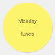 Neste dia da semana, os adesivos exibem a palavra segunda-feira junto com a tradução de inglês para espanhol, lunes. A cor de fundo é amarela, que pode ser personalizada. Obrigado por comprar CherylsArt no Zazzle.