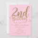 segundo aniversário 2 - Convites de dois participantes, cor-de-rosa e Dourada. Personalizar para qualquer evento.