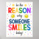 SEJA A RAZÃO PELA QUAL ALGUÉM CHEIRA HOJE! Esta poster é excelente para usar como decoração de quarto de escola adolescente ou secundária e como motivação, bondade, arte anti-bully em salas de aula de todas as idades! Torna o excelente inspirador e provocador de pensamentos em arte. Um gráfico excelente, colorido e atraente que captará a atenção da criança e lembrá-la de ser legal e fazer os outros sorrirem! O design apresenta cores brilhantes, divertidas e alegres.
