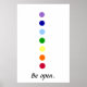 Gráfico Chakra com a frase "Seja aberto". Impressão divertida por andar num estúdio de ioga ou massagem!