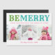 Cartões de foto de Natal magnéticos personalizados com um modelo simples para personalização. Este design festivo bonito apresenta tipografia ousada da FELIZ BE em cores verde, aqua e rosa. A saudação abaixo diz "Feliz feriado da nossa família para a sua". Personalize-o com 3 fotos da família, seus nomes e o ano. Use as ferramentas de design para escolher qualquer cor de fundo, editar as fontes e cores do texto ou adicionar mais fotos para criar uma única de um tipo de Cartões de foto de Natal.