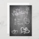 Dias de os namorados no estilo do quadro com saudações cardíacas e calcárias manuscritas na frente do cartão. As áreas restantes estão disponíveis livremente.