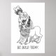 Este poster de motivação apresenta a frase ousada "Seja negrito hoje" ao lado de uma ilustração minimalista de uma mulher que interage brincalhosamente com um leão. Um lembrete poderoso para abraçar a coragem, a força e a destreza em tudo que você faz. Arte perfeita para pensadores ousados, espaços criativos, ou qualquer pessoa que precise de poder diário.
