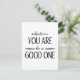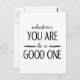 Cartão postal inspiracional exibindo a frase "O que você for bom" em texto preto usando uma combinação de uma fonte cursiva e uma fonte sans serif.