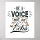 Poster de arte do Word com uma mensagem oportuna para ser uma voz não um eco. Design de tipografia inspiracional motiva você a levantar sua voz única para tudo o que importa