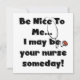 Enfermeira T-shirts, canecas, cartões, autocolantes, botões, bolsas e outros presentes amamentados com um estetoscópio e texto que diz "Seja gentil comigo.. Talvez um dia seja sua enfermeira!".