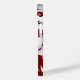 Esta capas de iphone temática de futebol apresenta bolas de marrom de tamanho variado e bolas de futebol brancas organizadas em um padrão aleatório em um fundo de marrom personalizável — personalize seu monograma, letra de varsidade ou número de camisa — por katz_d_zynes