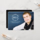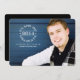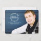 Um design simples e moderno que apresenta a foto do seu formando na frente com todos os detalhes da festa ou do anúncio no verso. A divertida design de tipografia branca anuncia "CLASS OF 2014 FORMANDO" com o olhar de um selo formal. Tanto caprichosa quanto formal, é uma design contemporânea para destacar a celebração da formatura do seu filho.