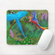 A pintura de papagaios do macaw imprimiu em um mousepad do computador da qualidade. Um grande presente para fãs do pássaro.