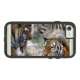 Bela arte digital com dois tigres com efeito 3D aparentando saltar do quadro. Lado de fundo com girafa e zebra. A maravilhosa arte animal selvagem faz uma maravilhosa ideia de presente para amantes da vida selvagem.