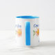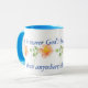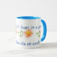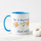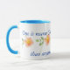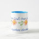 Uma caneca branca da campainha da boa qualidade com uma borda e um punho do azul de pó. O design é uma aguarela pintado à mão do peachy-colorida cor-de-rosa e o texto lê, 'um é o coração de um deus mais próximo em um jardim do que em qualquer outro lugar na terra. Máquina de lavar louça e cofre forte da microonda. Também disponível no tamanho maior.