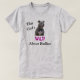 Esta camisa diz, "A VONTADE desta Rapariga sobre Bullies", e mostra um bonito Nose Azul Pitbull chamado Sarge. Sargento está sentado alto e alerta. Este cachorro maravilhoso adora mastigar e brincar com seu brinquedo favorito, um skate.