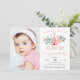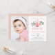 Convite de festas de estilo boho adorável para a sua primeira festa de aniversário apresenta uma ilustração rosa, flanqueada por flores e folhas pastéis. "Ela é selvagem" aparece em letras de pêssego. Personalize com os detalhes da sua festa de aniversário de um ano em pêssego e cinza modernos e brancos, e adicione uma foto favorita da aniversariante no lado esquerdo. Cartões inversos a rosas sólidas.