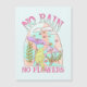 Abrace o crescimento e a resiliência com este cartão de saudação belamente ilustrado com a frase "Sem Chuva, Sem Flores" rodeada por flores vibrantes e cogumelos brancos. Esta trabalho de arte inspirada na natureza é um lembrete de que os desafios trazem crescimento e beleza. Perfeito para amantes da arte botânica, positividade e estética de cottagecore!