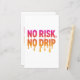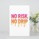 Citação "Sem Risco, Sem Drip" em negrito no estilo de texto sem detalhe de tendência. Perfeito para amantes de roupa de rua, prostitutas e criadores que abraçam o risco de brilhar. Ideal para camisetas, capuzes, adesivos e mais produtos.