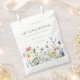Este design apresenta uma fileira de delicadas flores silvestres em aquarela. Perfeito para casamentos de jardim de verão.