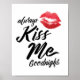 Design moderno com letras negras e palavras, "Sempre me beije boa noite." A ilustração de lábios vermelho e preto enquadra o design no canto superior direito. Lembrete de presente de excelente para o seu cônjuge!