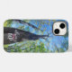 A capa de telefone perfeita para o amante da árvore. Sempre Procure, a combinação de texto moderno é completamente personalizável. Perde-se a magia se não olhares para cima. Olhando para as folhas do outono e um céu de outono. troncos de árvores tortos, folhas amarelas, verdes e laranja, caem nítidos céus azuis. Foto original 18/10/22, Kingsville, MD, Pequenas Cachorras.