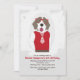 Um convite do divertimento para um aniversário dos cão-amantes que caracteriza um cão masculino vestiu-se em uma camisa, em uma camisola e em um laço vestindo vidros. (FP)
