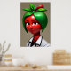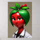 Um retrato de uma doce senhora de maçã vermelha com cabelo verde vestindo roupas brancas. Esta é uma arte gerada por IA.