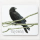Um corvo que senta-se em um ramo com as palavras "senhora louca do corvo" embaixo.