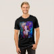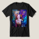 Uma mulher enfeitada em trajes elaborados e vibrantes é representada, cercada por uma explosão de cores e padrões intrincados. Seu endereço de cabeleireiro inclui uma borboleta e flores impressionantes, melhorando a atmosfera fantástica e surreal.