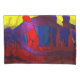 A arte original da mulher bonita em vermelho e do azul em uma fronha de almofada faz um "sexy", totalmente original, indicação no quarto.