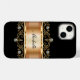 Mala smartphone elegante e elegante com muitos elementos de design de tom de ouro e borrão para iPhone em um belo design de aparência metálica de ouro digital com impressão digital com joias de diamante simuladas em escala superior impressas no cobrir. Personalize o nome do monograma ou adicione as iniciais do monograma.