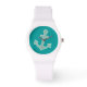 Relógio náutico feminino com símbolo de âncora de navios de barco verde e bonito cor de fundo que você pode mudar. Vista o seu tempo em estilo com este tema marinho design, projetado para senhoras e meninas.