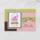 Bolos, biscoitos e doces. Encaixe seu doce dente com esses cartões de visitas fantasiosos de Kustom by Kris. Eles apresentam uma saborosa cesta de doces e muito papel de sucata. Mostrado aqui com o estoque de cartolina especial de Zazzle. Esta design também está disponível com um bolo de casamento: