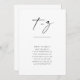 Estes cartões de assentos simples, mas elegantes, vão parecer fantásticos para o seu casamento ou outro evento! Torne fácil para seus convidados encontrar seu número de tabela organizando seus nomes em ordem alfabética. Apresentando uma fonte sans-serif simples e limpa com uma fonte de destaque de script manuscrita. Personalize o sinal com todos os nomes de convidados que começam com as letras T-Z. Se você ama este design, certifique-se de verificar o restante dos cartões alfabéticos de assentos em nossa Coleção de Script Moderno!