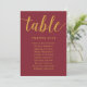 Personalize cada mesa para seus convidados, o enquadramento adiciona um toque agradável. O script Dourado de "mesa" não é editável, mas os nomes e as cores de fundo são.