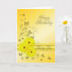 Um belo cartão de aniversário com flores margaridas amarelas sobre um fundo vibrante girando.