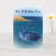 Cat Goodbye Card, mostrada neste cartão de despedida é um gato que se escondeu no cesto no oceano, ela se disfarçou para se parecer com o mar, a frente diz que sentiremos sua falta, dentro a carta diz que despedidas são sempre duros