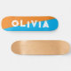 simples skate laranja e azul para ele, para ela ou para eles é seu nome personalizado em uma risca arrojada e afável. Obtenha o design abstrato perfeito para um aniversário adolescente ou um presente de Natal. Escreva seu próprio nome para um skate personalizado.