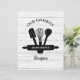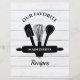 Folhas de divisor de mesa para o livro de receitas da madeira rusticada. Personalizar com categoria. Adicione ao seu classificador de receitas para manter as suas receitas familiares favoritas organizadas. A textura rústica de madeira com utensílios cozinheiros faz do livro de culinária um presente especial para a família.
