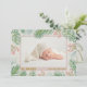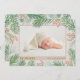 Os anúncios elegantes de natalidade de feriado apresentam sua foto favorita de bebê recém-nascido com uma fronteira de pinheiros e bagas, o nome do seu bebê, estatísticas de natalidade e nomes de pais em qualquer fonte e cor de fonte. Mude a cor no verso e adicione mais fotos no verso também!