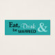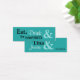 Esta etiqueta de pequeno favor apresenta um fundo azul aqua e os nomes da noiva e noiva e a data do casamento numa combinação de letras brancas e brancas brancas e brancas. O grande e azul claro termina com este design. Do outro lado desta etiqueta está a frase Comer, Beber e Casar com estilo correspondente. Esta etiqueta moderna é uma forma excelente de acabar por favorecer a embalagem. Coordenação de produtos disponíveis. Deseja alterar o estilo da fonte ou a cor ou o tamanho do texto? Clique no botão laranja "Personalizar!" na design. Isso permitirá que você personalize seu design ainda mais.