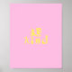 Diversão e divertida sejam bondosas palavras poster cor-de-rosa e amarelas para decoração de arte em parede.
