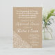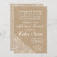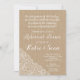 Convite rústico e chique do jantar de ensaio com fundo de serapilheira e beira do laço.
