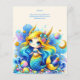 Convite de aniversário de 1 ano com tema de sereia (pode editar para qualquer idade) para meninas, filhas nas cores azul turquesa amarelo e dourado. Desenho por LeahG. Gráficos por Grafixdeals.com.