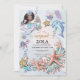 Uma convite de aniversário mágica de sereia debaixo da cena do mar com conchas marinhas, golfinhos, corais, tartarugas e estrelas-do-mar. Bonito aquarela com sereia fofa. Crie um tema mágico para um aniversário da temporada de verão para personalizar para qualquer idade entre 1 e 6 anos ou mais.