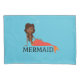 Esta design apresenta uma bela imagem de desenho animado de uma sereia feliz relaxando debaixo d'água. Ela é uma linda garota negra com cauda de peixe. Há bolhas de ar ao lado da cabeça dela. A palavra "MERMAID" é escrita por baixo da imagem.