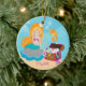 Personalize os enfeites de natal personalizados do cabelo sereia vermelha bonito datado ajustados em um fundo da bolha da água azul com uma arca do tesouro & um cavalo marinho. Visite nossa loja para ver esta sereia adorável nos uma variedade de cores do cabelo & da roupa.
