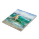 Nesta imagem bonita e fantástica, uma sereia loura basks na costa de um mar azul do aqua como carretel das gaivotas em cima.