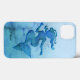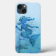 Uma silhueta de uma sereia com cabelo enrolado longo, com coloração azul ao estilo aquoso. Linda criatura de fantasia, boa para amantes do oceano e da praia.
