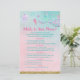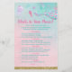 Estas elegantes "What's In Your Phone Cards" são uma forma excelente de se divertir com o seu Chá de fraldas e é garantido ser um grande sucesso! Simplesmente passá-los durante o Chá de fraldas onde os convidados se divertirão a passar pelos seus telefones e a verificar os itens que têm na lista. A pessoa com mais pontos ganha! A design apresenta uma cauda colorida de sereia com embelezamentos falsos de ouro brilhante.