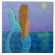 Minha adorável pintura abstrata de uma sereia observando o sol impressa em azulejo de cerâmica