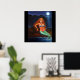 Da minha acrílica na pintura de canvas, com uma sereia vermelha cortada sobre rochas sob uma noite de lua de cheio.